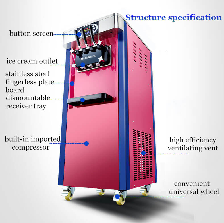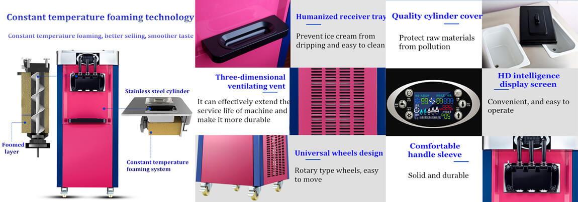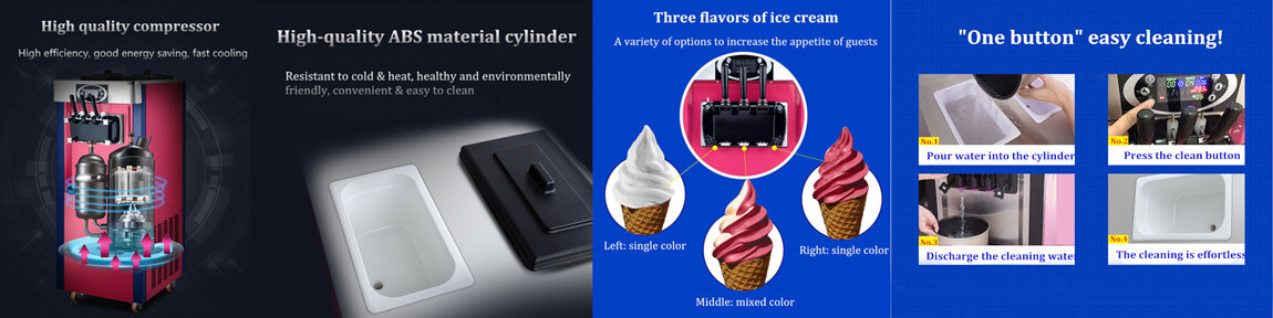4. Vertical soft ice cream machine can make the different flavor and different shapes soft ice creams.